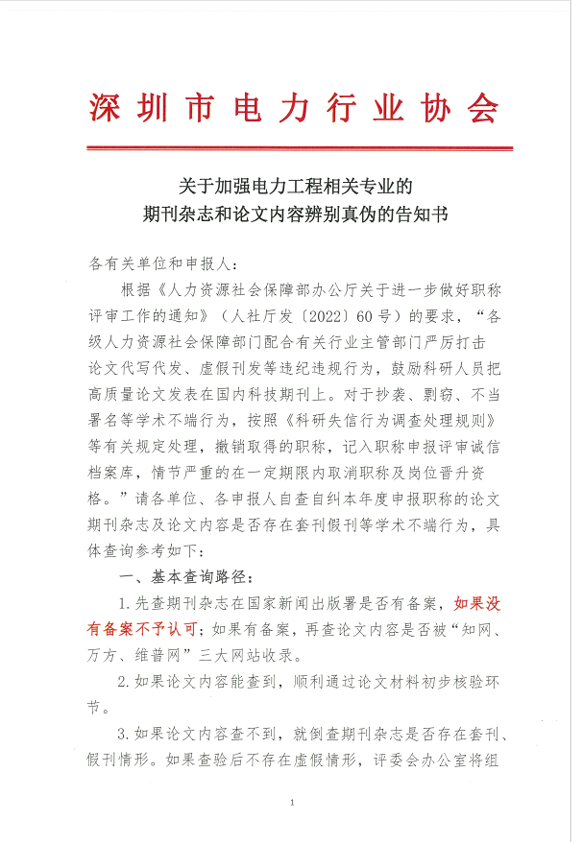 关于加强电力工程相关专业的期刊杂志和论文内容辨别真伪的告知书