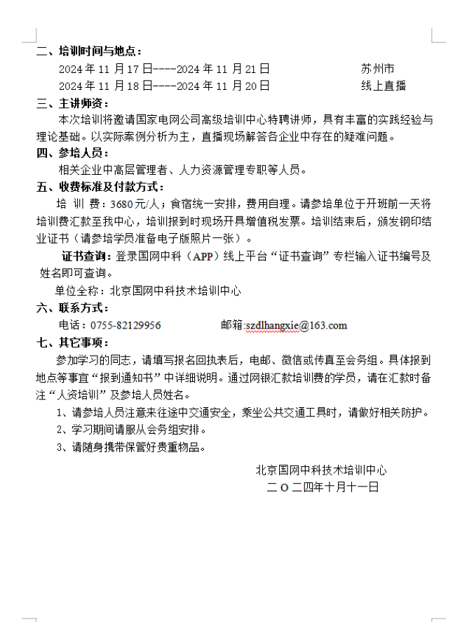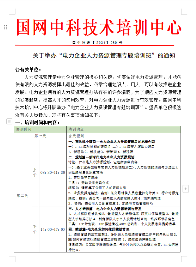 关于举办“电力企业人力资源管理专题培训班”的通知