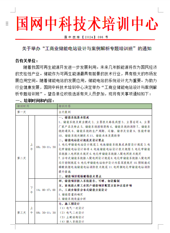关于举办“工商业储能电站设计与案例解析专题培训班”的通知