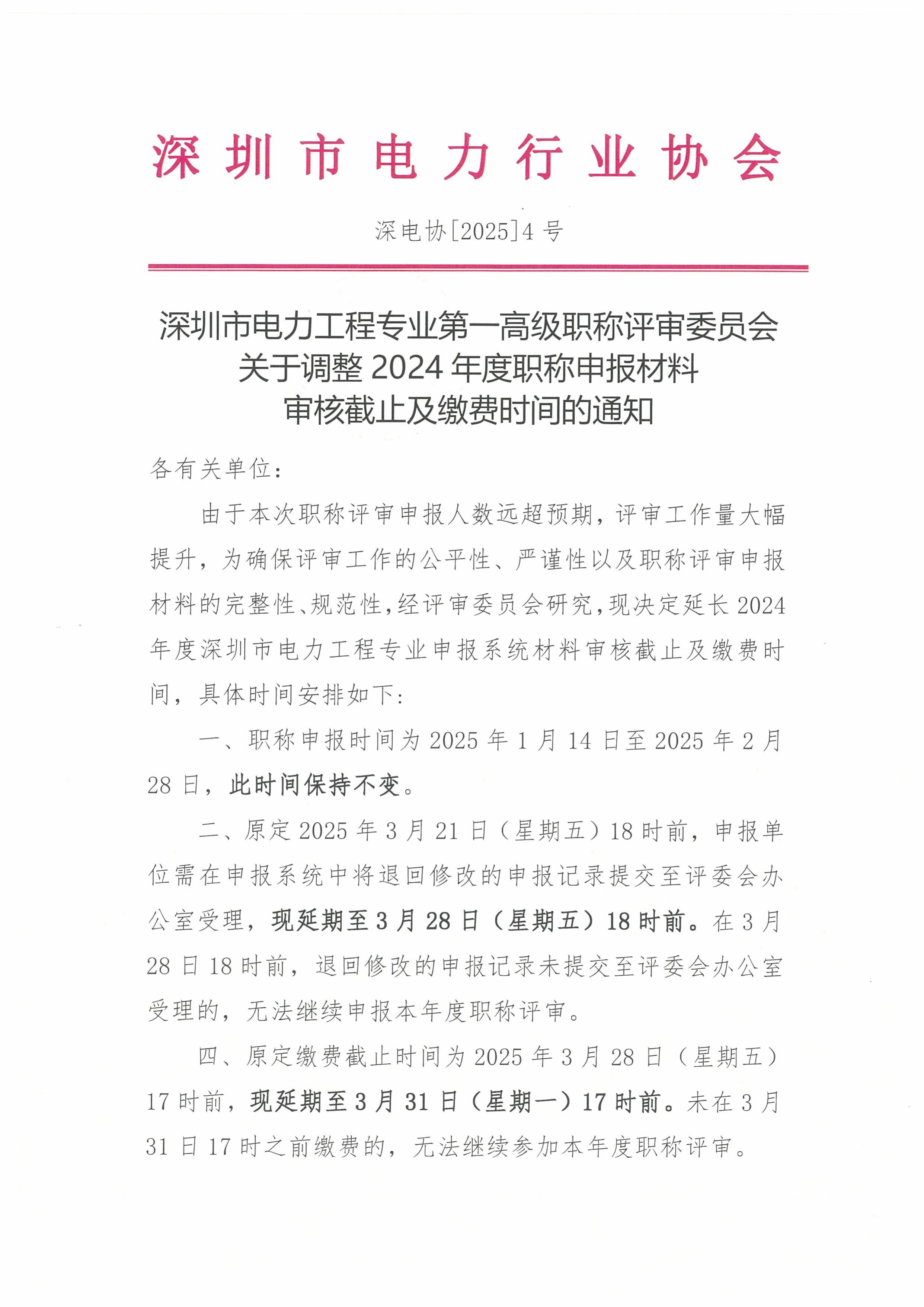 关于调整2024年度职称申报材料审核截止及缴费时间的通知