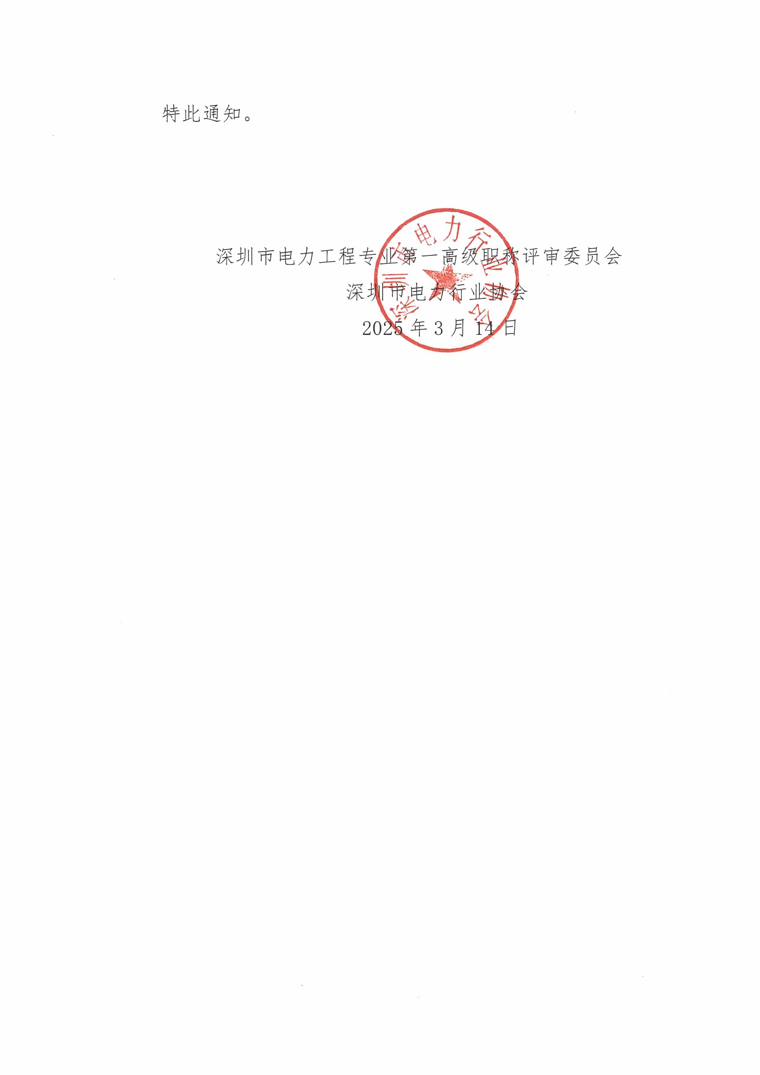 关于征集深圳市电力工程专业第一高级职称评审委 员会正高级评委的公告.