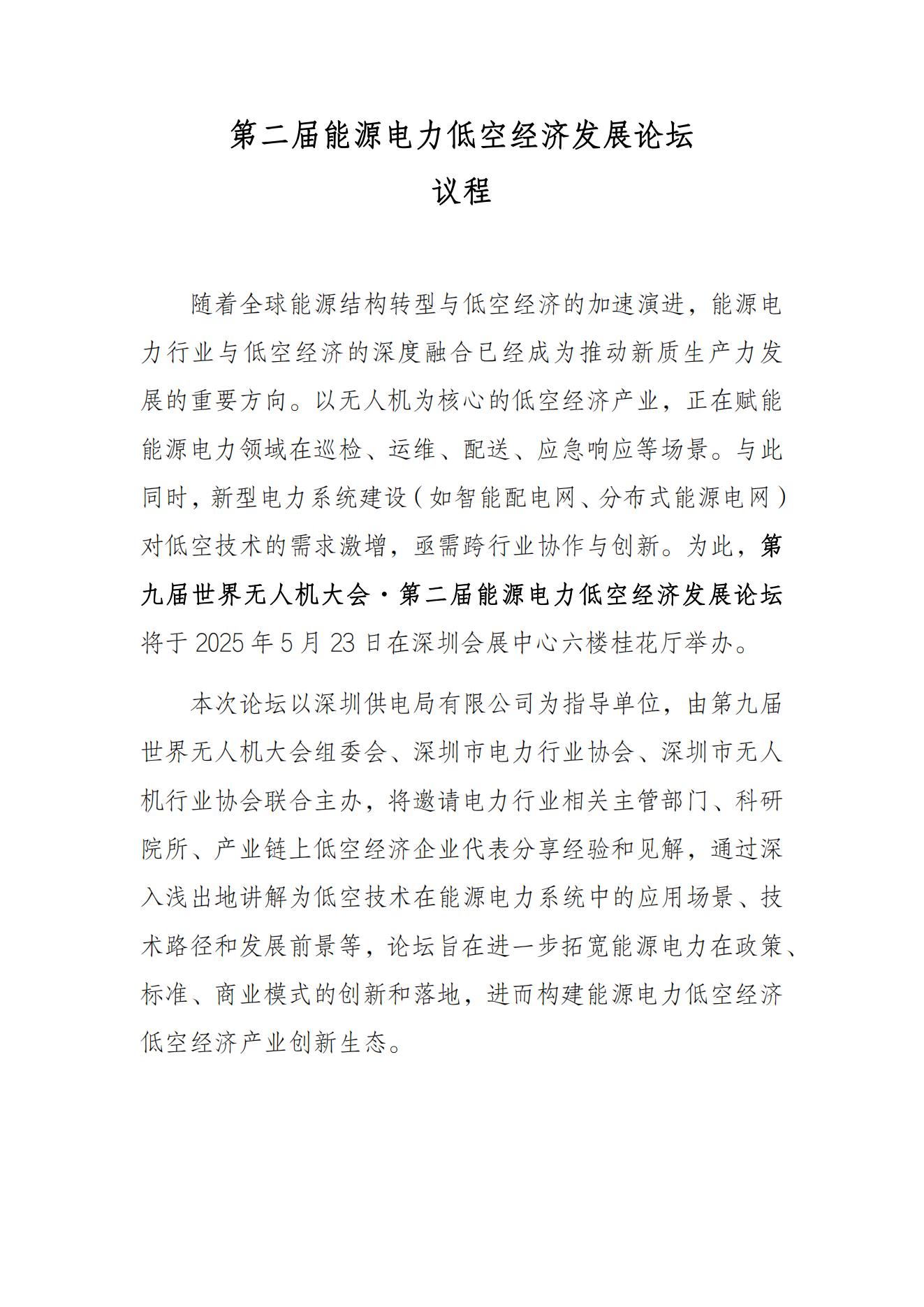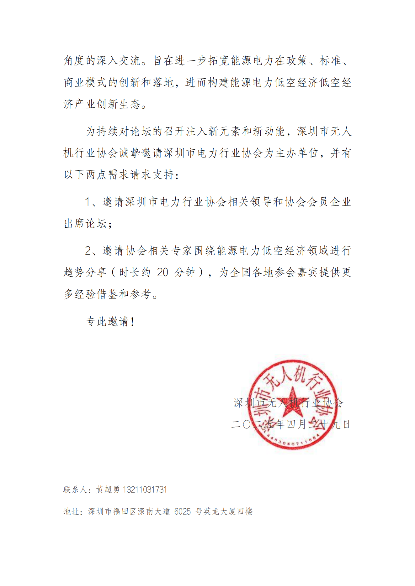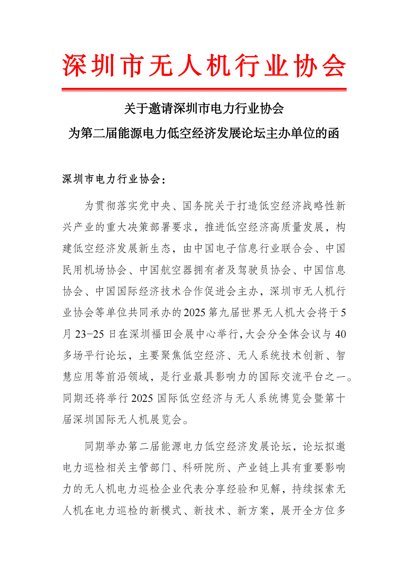 关于邀请深圳市电力行业协会为第二届能源电力低空经济发展论坛主办单位的函