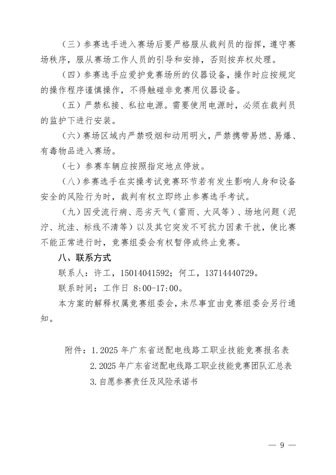 关于印发《2025年广东省送配电线路工职业技能竞赛实施方案》的通知